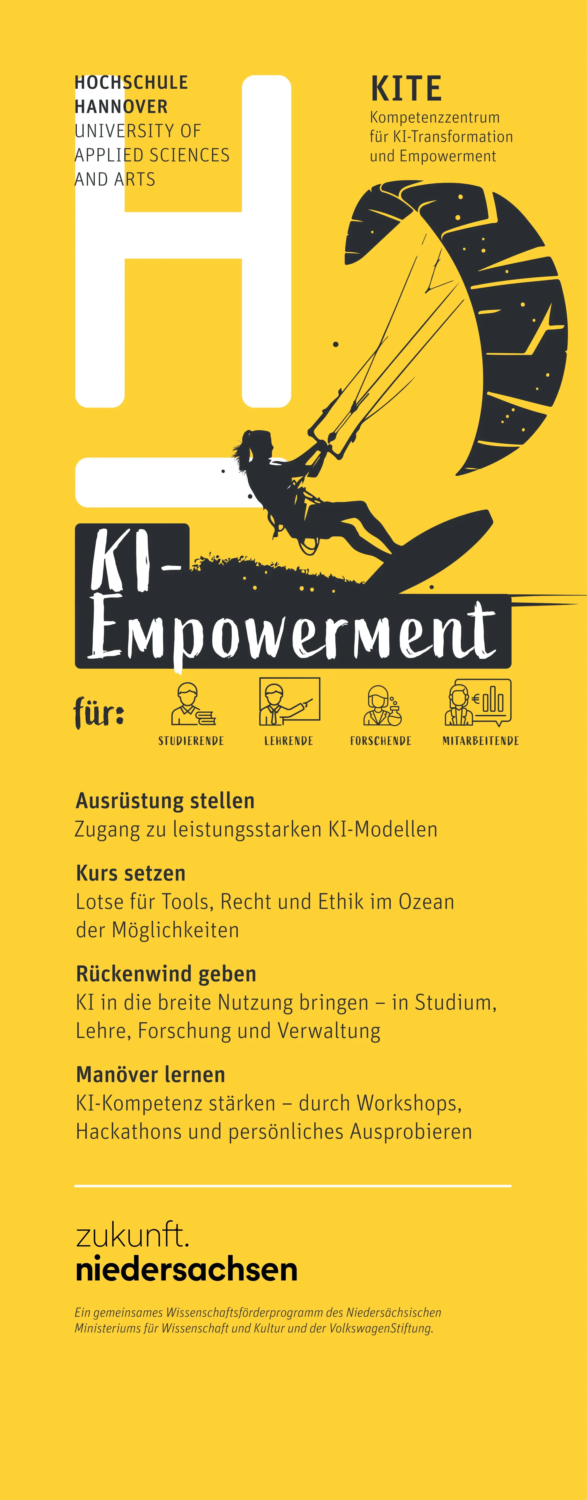 KITE ist Teil des PSE-geförderten Projekts DriFT@HsH – Driver of Future Transformation. Unser Mehrwert als Teil von DriFT ist: Wir gestalten KI-Empowerment gemeinsam in Form konkreter Angebote, Projekte und Werkzeuge, die im Alltag wirklich ankommen – mit den Fakultäten, Abteilungen, mit den Menschen im Mittelpunkt.